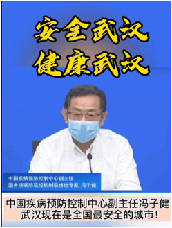中國疾病預防控制中心副主任馮子健說:武漢現(xiàn)在是全國最安全的城市!